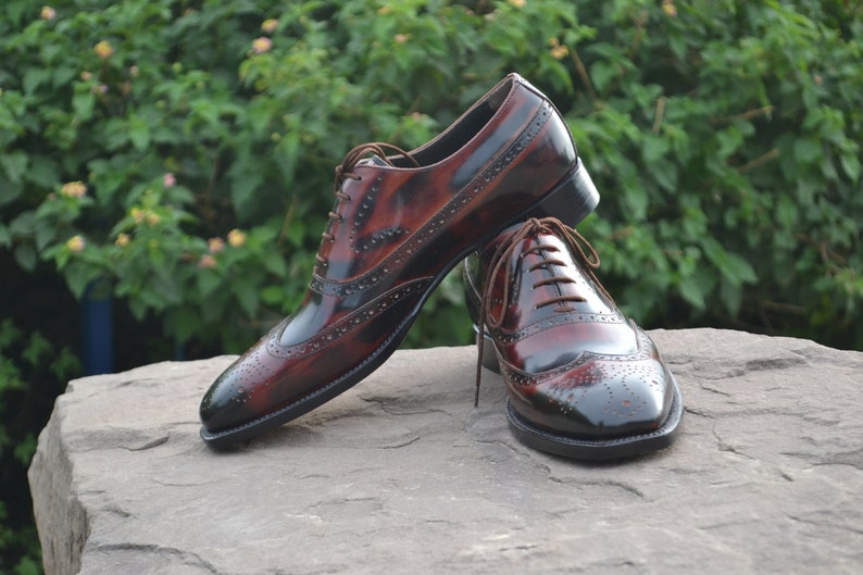 Bespoke Men's Handmade Brown Wing Tip Leather Dress Formal Luxury Oxford Shoes