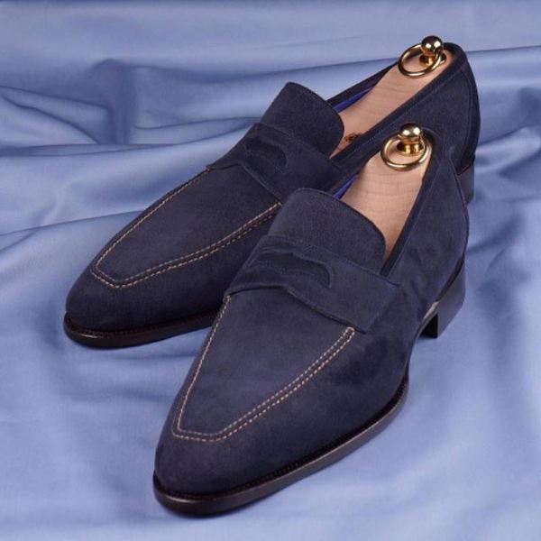 Handmade Bespoke Men's Navy Blue Suede Moccasins, Blue Dress Shoes For Men's