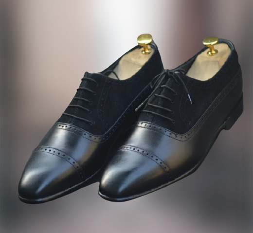 Handmade Mens leather and suede lace up dress shoes, Men black Oxfords shoes