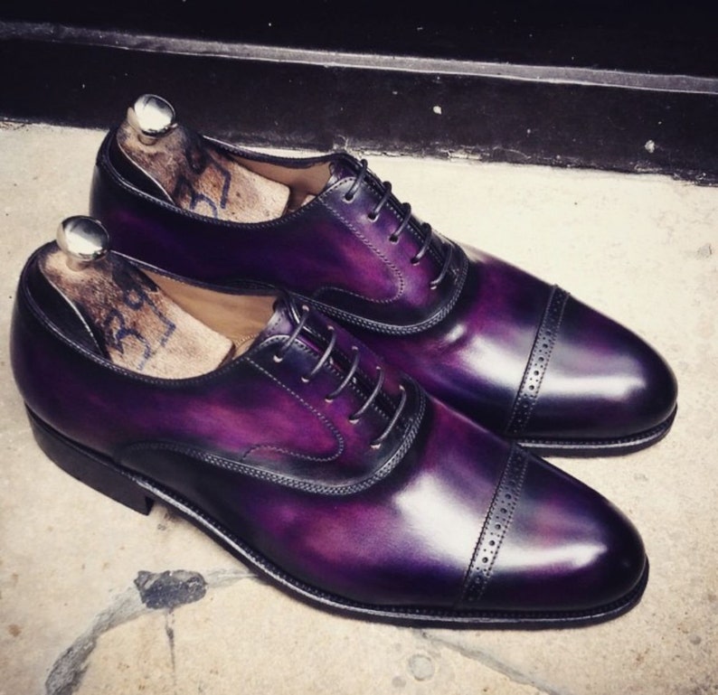 Handmade Leather Patina Shaded, CapToe Dress Shoes For Men's