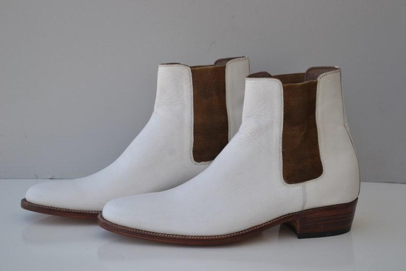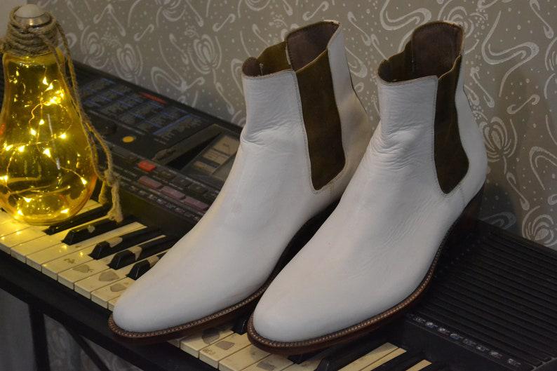 Handmade Bespoke Men's White Color Genuine Leather Chelsea Ankle High Boots