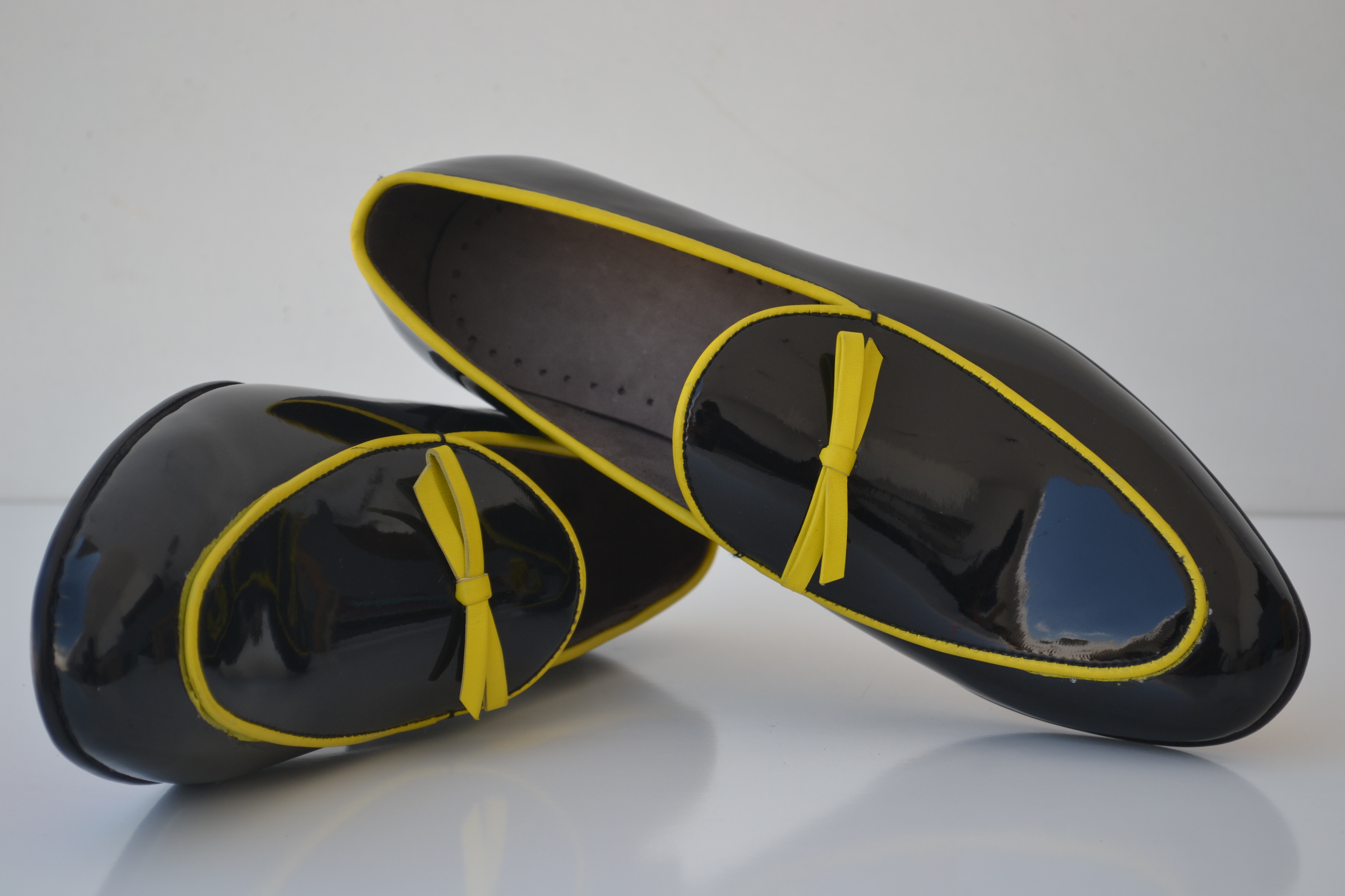 Handmade Bespoke Men's Black Color Genuine Patent Leather Penny Lofers Shoes