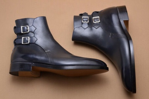 Handmade Bespoke Men's Black Color Genuine Leather Double Monk Strap Jodhpur Ankle High Boots