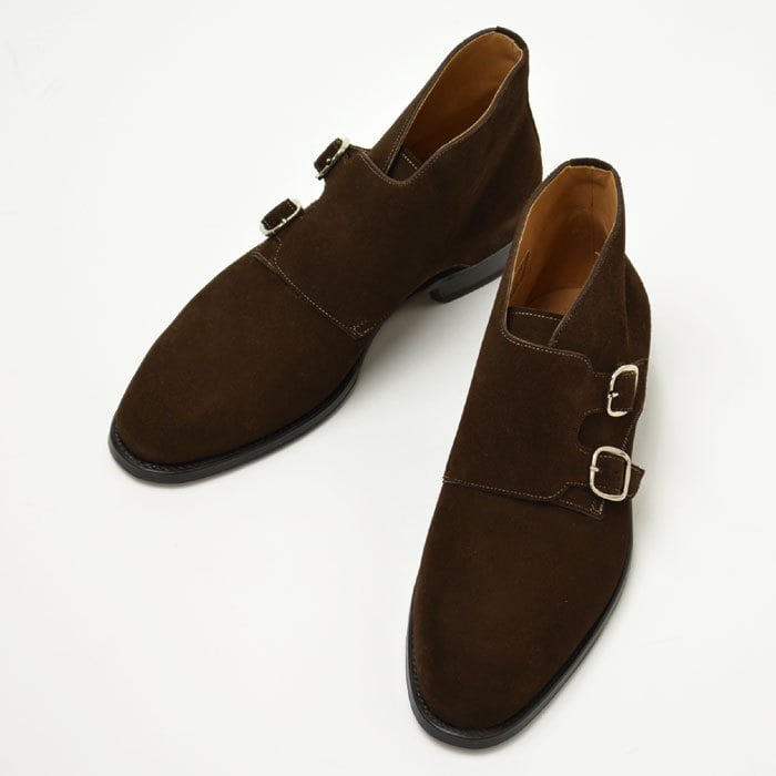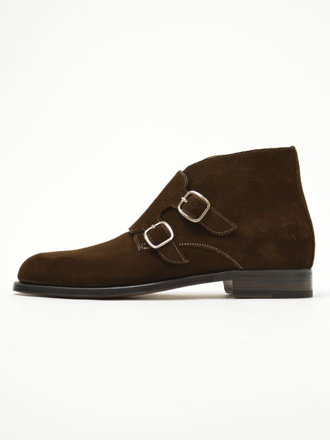 Handmade Bespoke Men's Brown Color Genuine Suede Leather With Double Monk Strap , Ankle High Boots