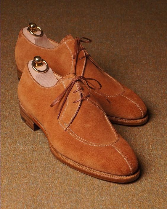 Handmade Bespoke Men's Brown Color Genuine Suede Leather Upper Lace Up Moccasin Shoes