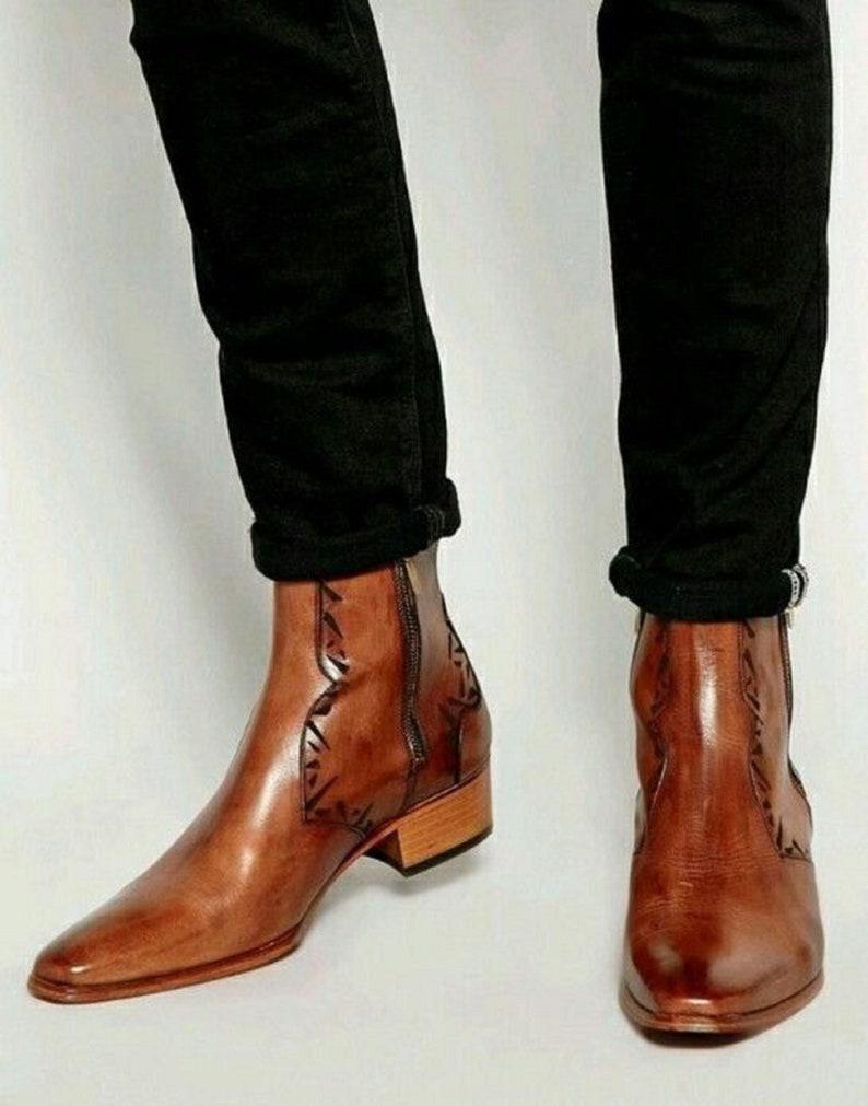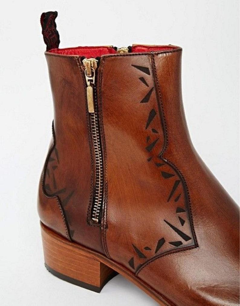 Bespoke Men's Handmade Tan Color Genuine Leather Side Zipper Ankle High Boots