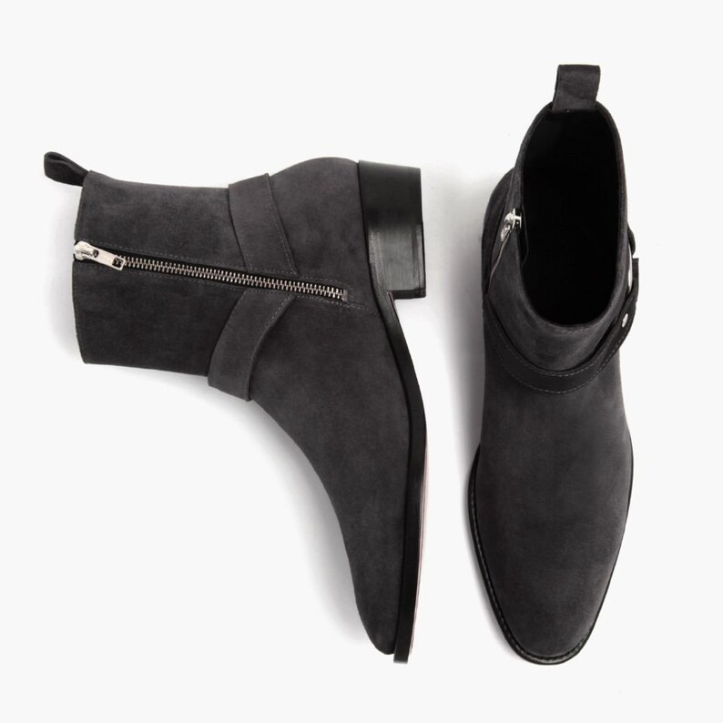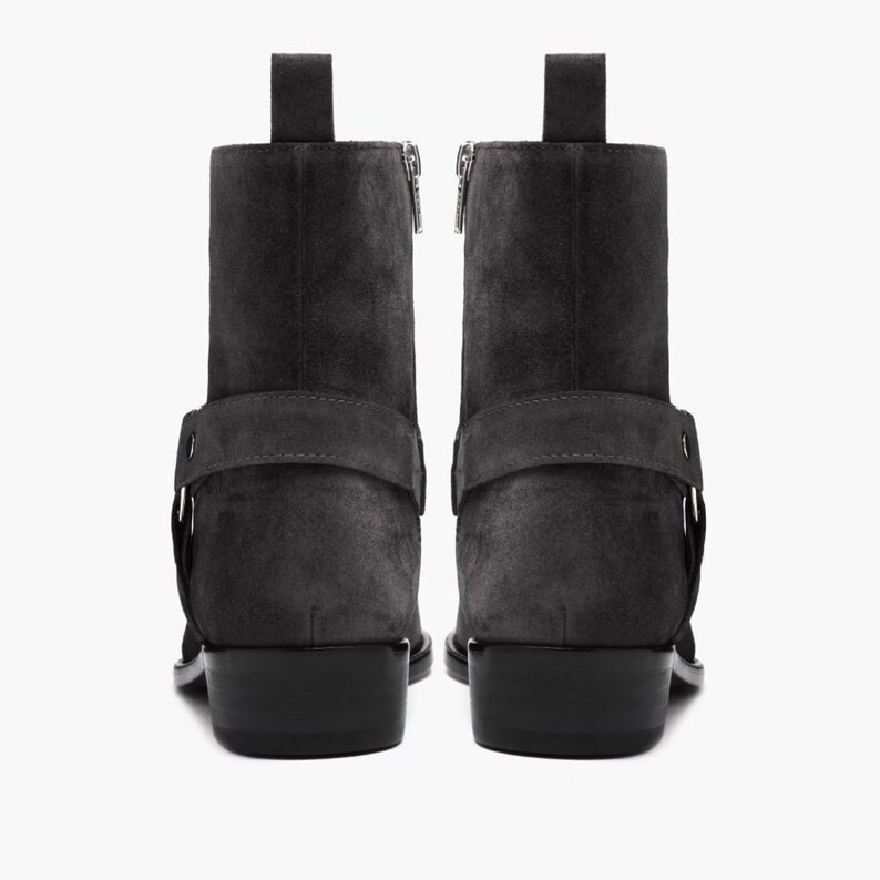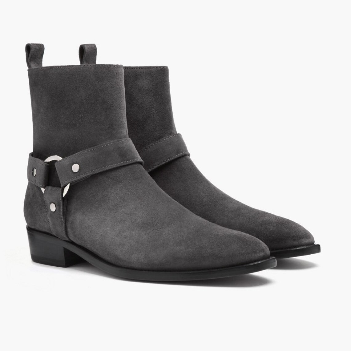 Handmade Shoes Men's Silver Grey Color Suede Leather Harness, Formal Boots