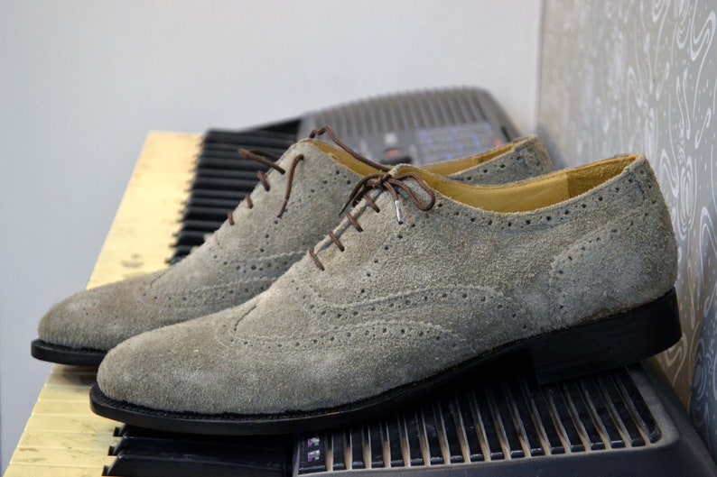 Pure Handmade For Men's Gray Suede Lace Up Wing Tip Brogue Oxford Shoes