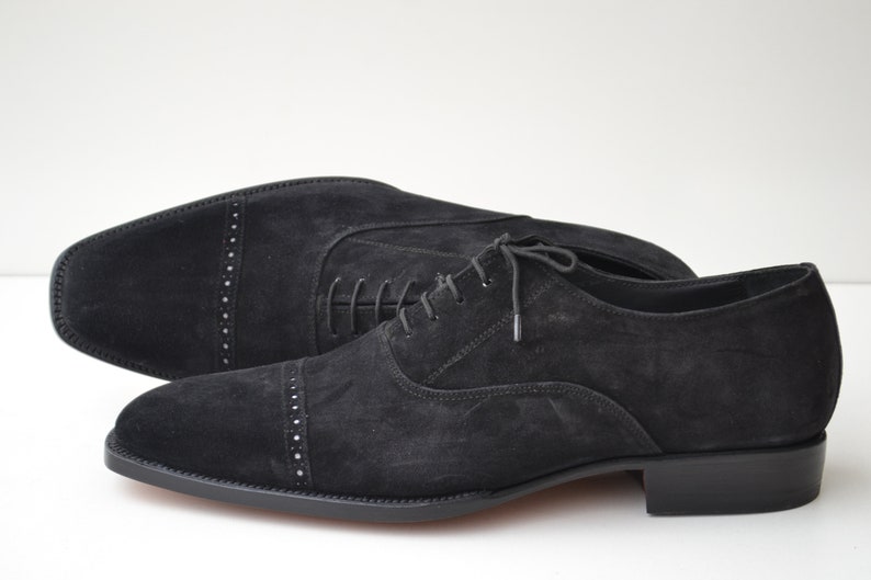 Bespoke Handmade Men's Black Color Genuine Suede Leather Cap Toe Lace Up , Oxford Shoes
