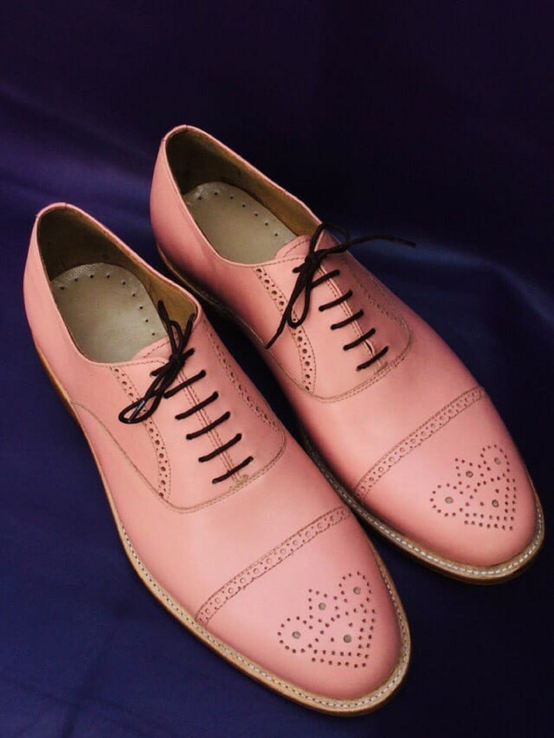 Handcrafted Men's Pink Color Genuine Leather Cap Toe Brogue Formal, Dress Shoes