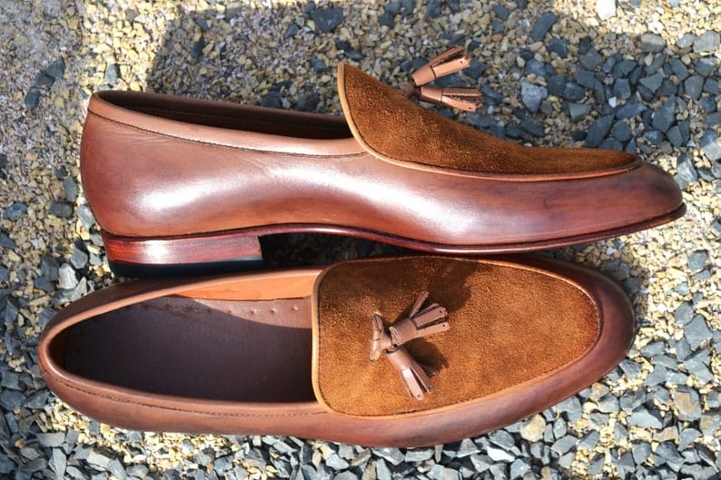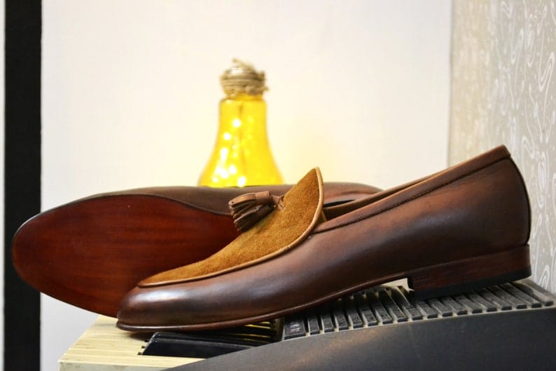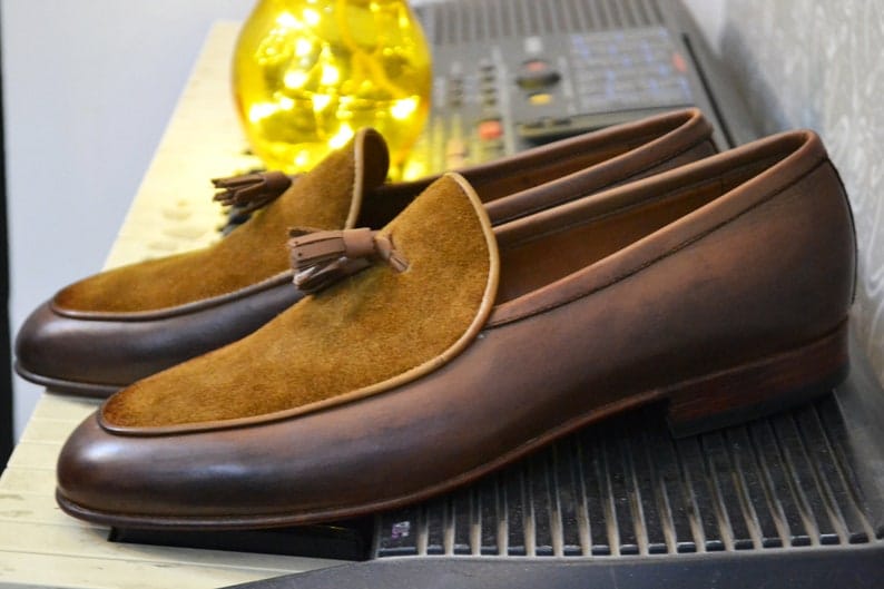 Men's Pure Handmade Brown Color Leather Suede Fringed Moccasin Shoes