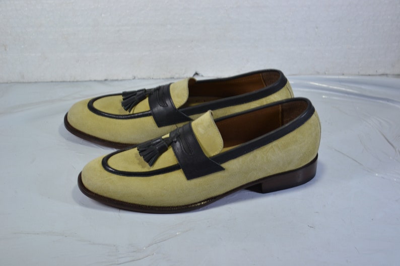 Handmade Men's Beige Genuine Suede Fringed Moccasins Loafers Shoes, Dress Formal