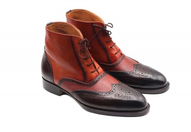Handmade For Men's Red & Black Wing Tip Ankle High Lace Up Stylish Boots