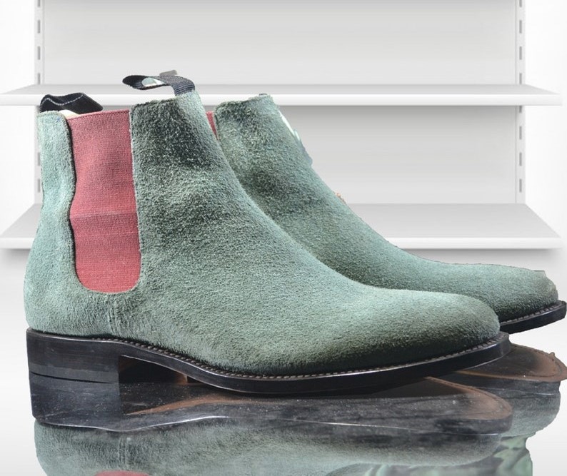 Handmade For Men's Grey Suede Chelsea Boots, Men's Ankle High Fashion Designer Boots