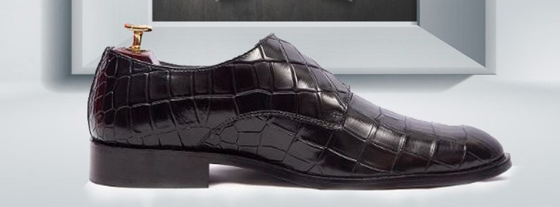New Men's Handmade Black Alligator Texture Color Leather Oxfords Buckle Strap Shoes