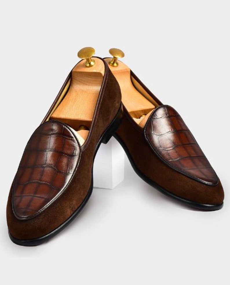 Bespoke Men's Pure Handmade Dark Brown Color Oxfords Crocodile Texture Leather Shoes