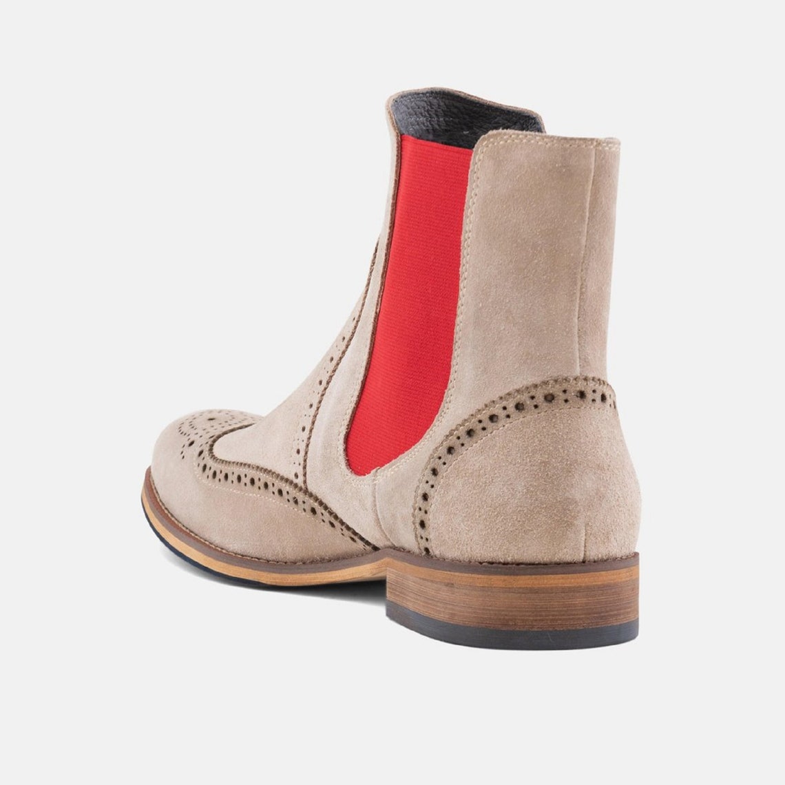 Handmade Bespoke Ankle High Beige Color Pure Suede Wing Tip Good Welted Chelsea Boots