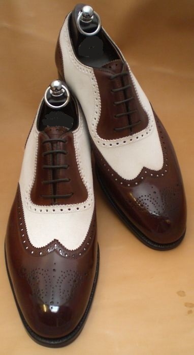 Handmade Bespoke Men's Dark Brown & White Lace up Brogue Toe , Shoes
