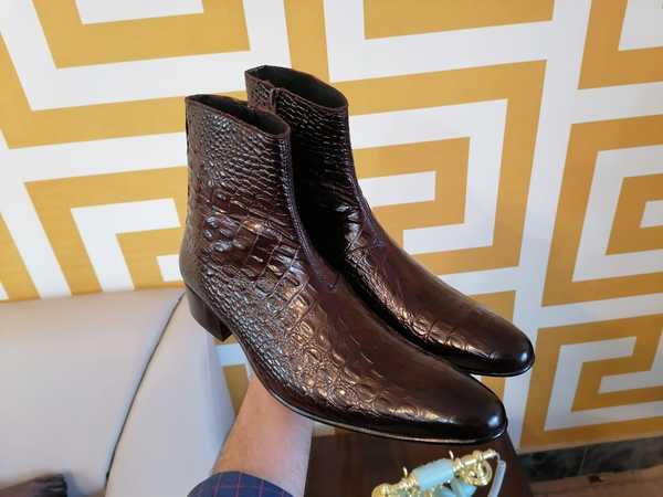 Handmade Mens Alligators boots, Men brown side zipper crocodile boots, Men Classic boots