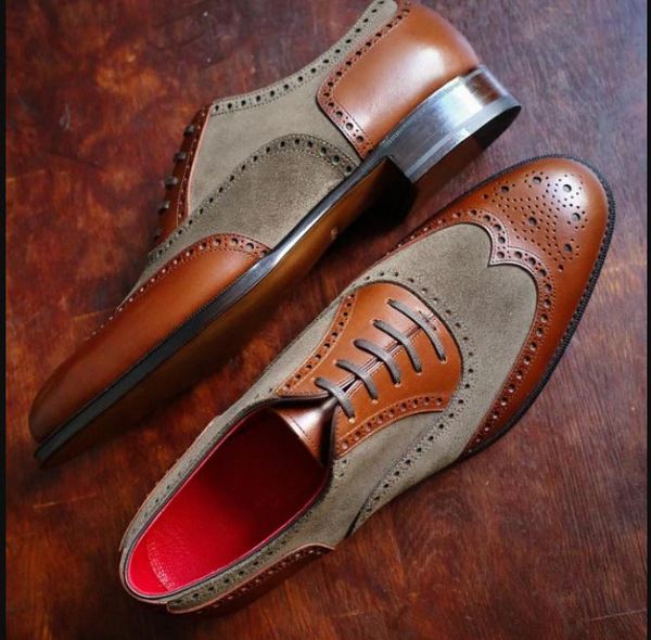 Handmade Men two tone wing tip brogue dress shoes, Men leather formal shoes