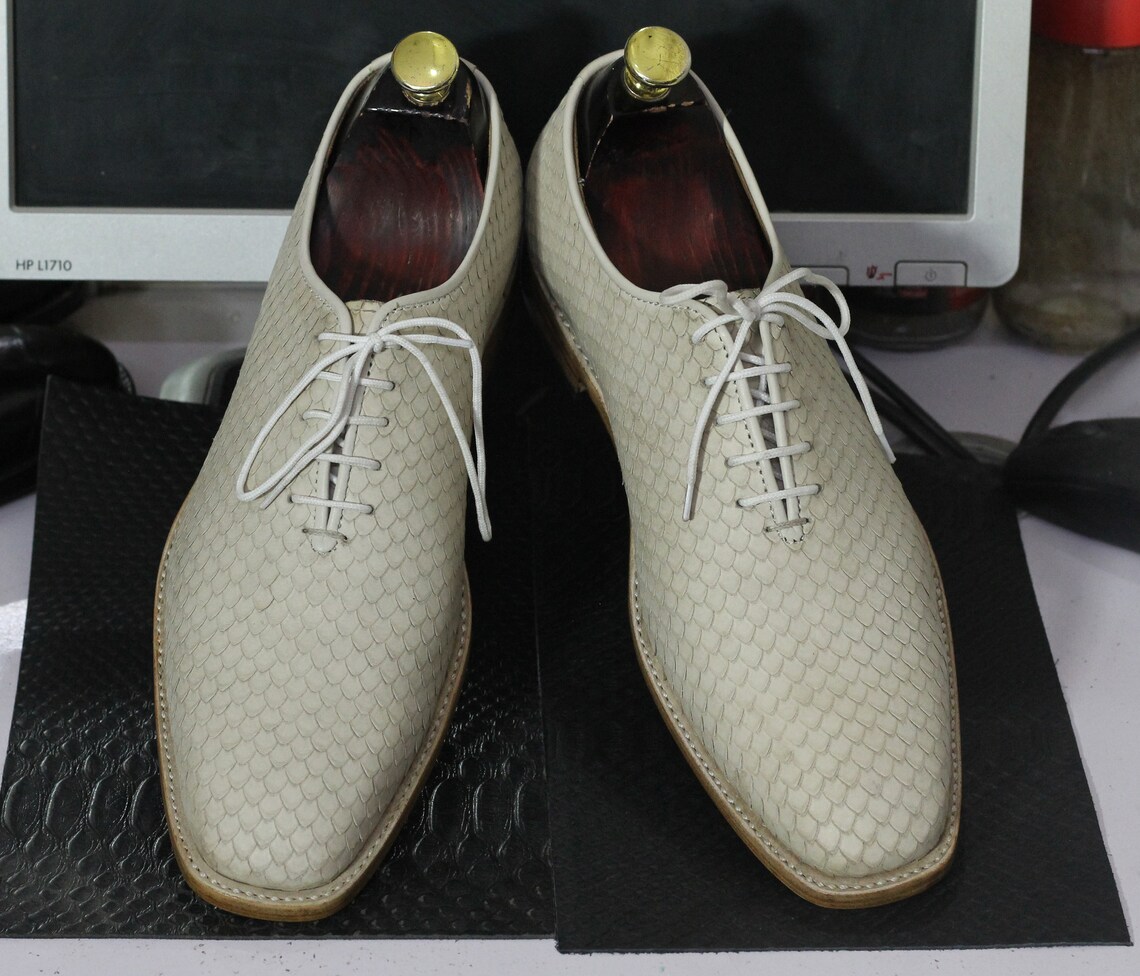 Handmade Men's Python Dress Shoes, Leather Whole Cut Lace Up Dress Shoes, Python Texture Shoes For Men