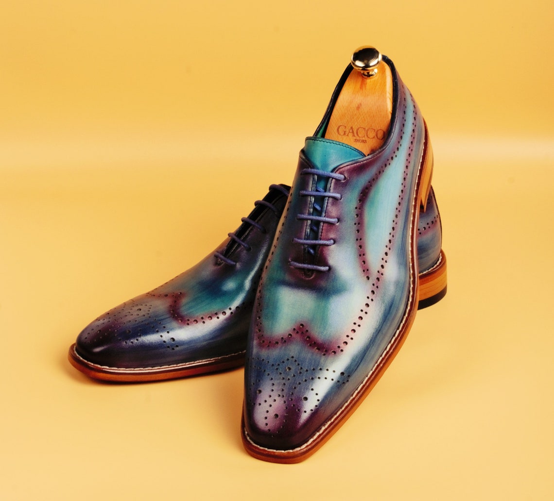 Ocean Blue Leather Patina Dress Shoes, Leather Luxury Mens Shoes, Handmade
