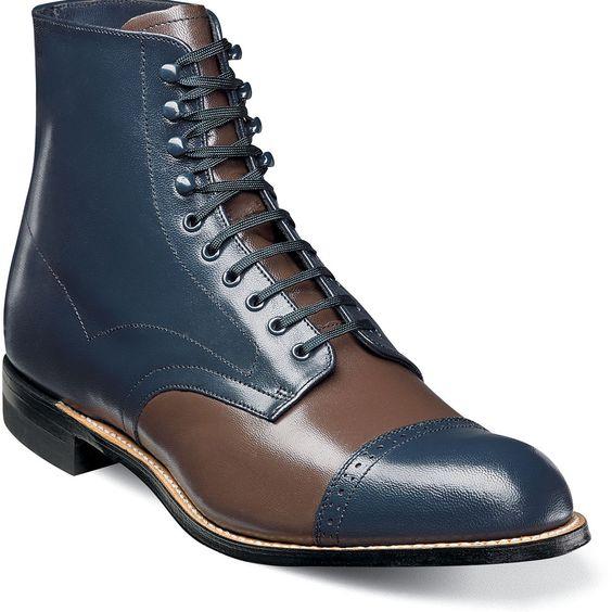 New Men's Handmade Brown & Blue Leather Cap Toe Lace Up Stylish Dress Boots