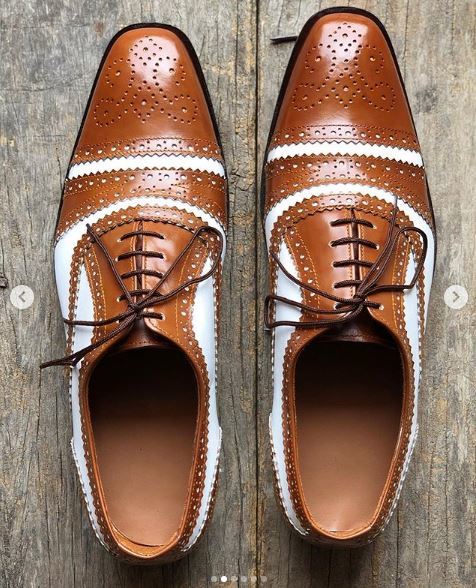New Men's Handmade Pure Leather Two Tone Lace up Cap Toe Brogue Dress Shoes