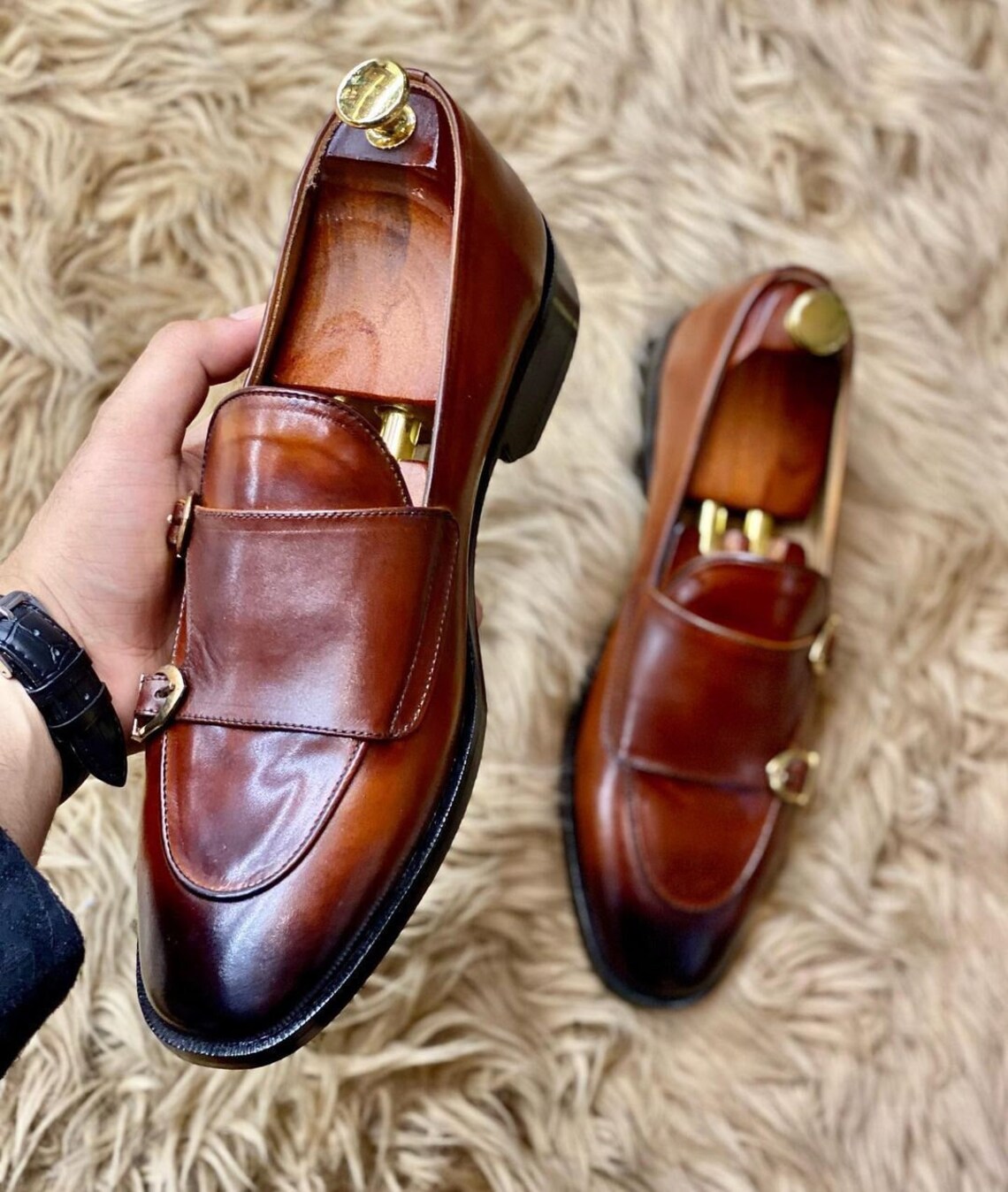 Pure Handmade Brown Double Strap loafer For Men's - Loafers for men - Men shoes, Men's Buckle Shoes