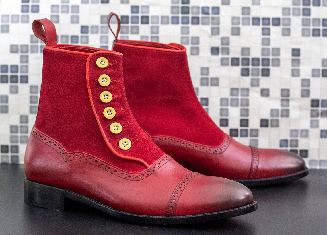 Handmade Men's Red Leather Boots, Red Suede Boots For Men, Mens Chelsea Boots, Mens Wedding Boots, Mens Suede Button Boots, Mens Ankle Boots
